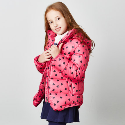 七匹狼 中大童可爱桃心羽绒服,填充80%白鸭绒,修身版型,撞色设计,洋溢活力青春奢华气质,儿童最爱~