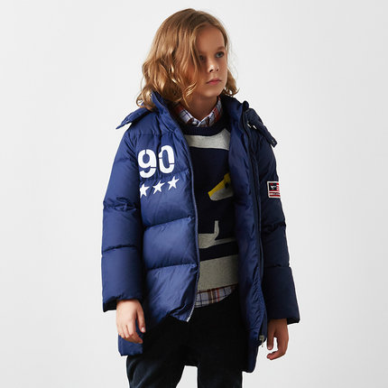 七匹狼 男童冬新款时尚加厚保暖羽绒服外套,90%白鸭绒填充,厚实保暖,连帽设计,帽沿添加挡风片,保护头部不受寒,立体保暖,精致拉链,结实耐用。