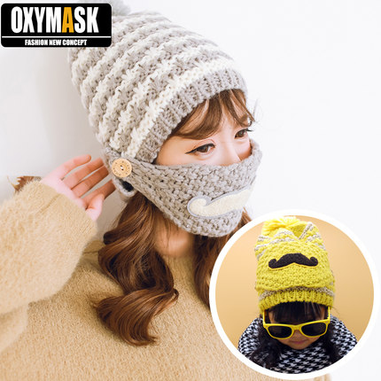 oxymask 韩版秋冬季口罩帽,2016年冬季新款,锦纶材质针织而成,口罩帽子一体,口罩拉上可当单帽穿着佩戴,下拉即是口罩,兼顾耳罩功能,穿着方便,保暖效果好,造型美观可爱,时尚百搭。多款可选,让你的冬季萌起来。