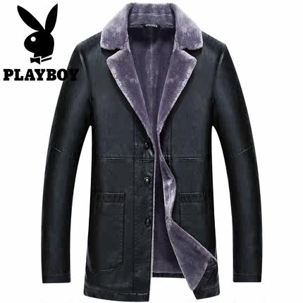 【花花公子】冬季pu皮夹克男士修身外套,加绒保暖, 修身西装领皮毛一体大衣。
