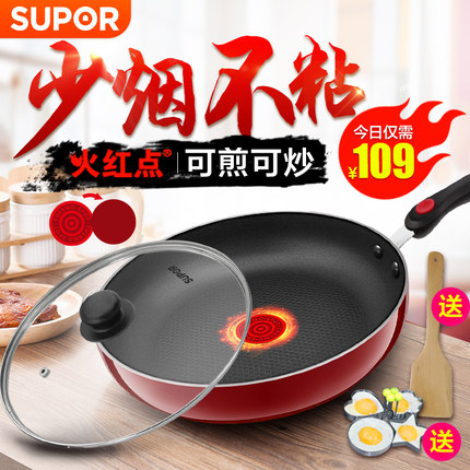 苏泊尔 无油烟不粘平底锅,火红点,煎炒两用,油温可见,无烟不粘。天猫有商家报价109元(第三款),劵后实付79元包邮。