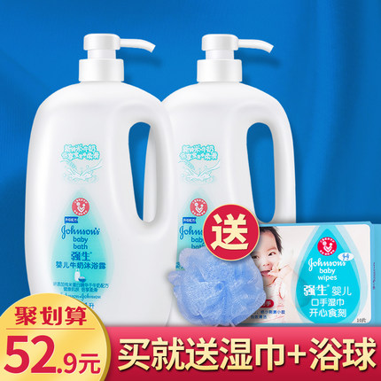 【37.9元包邮(需用券)强生婴儿牛奶沐浴露1L*2瓶+浴球+湿巾】