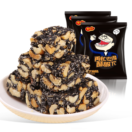 黄老五花生酥是内江威远著名的汉族小吃,现聚划算特价至29.8元,可叠加10元优惠券,折后实付19.8元包邮,黑芝麻+花生,抗饿利器!!