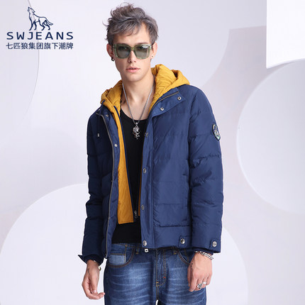 【299元包邮(449-150)七匹狼旗下潮牌SWJEANS 男士可拆卸连帽短款羽绒服】