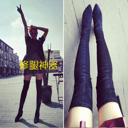 【画壁 尖头粗跟高跟过膝长靴 168元包邮(198-30券)】
