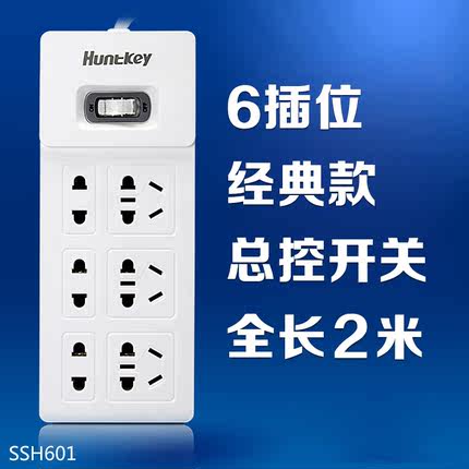 【19.9元包邮(38.9-20) Huntkey 航嘉 6位2米新国标防过载排插SSH601】