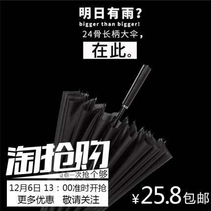 宝乐多 超大防风 长柄伞,结实耐用,强力拒水,加固防风。 天猫有商家报价25.8元包邮,月销量17000+件。