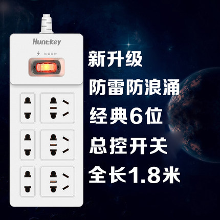 【航嘉 防雷防浪涌6位排插1.8米 19.9元(39.9-20元券)】