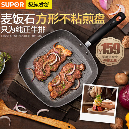 苏泊尔这款明火电磁炉通用煎锅采用了西式的方形设计,条纹架空能够将肉类牛排煎出好看且专业的纹路,天猫苏泊尔专卖店售价159元,领取80元优惠券,79元包邮就能拿下这件厨房神器。