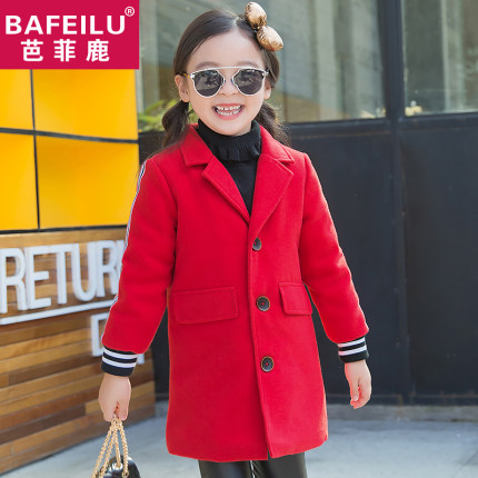 【芭菲鹿 秋冬女童翻领大衣 59元包邮(159-100券)】