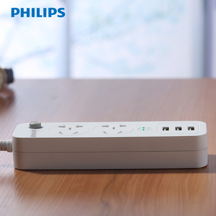 【飞利浦 USB插座多用功能充电插排 1.6米 38元包邮】
