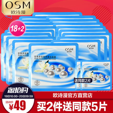 【欧诗漫 珍珠水润保湿面膜20片 39元包邮(49-10券)】
