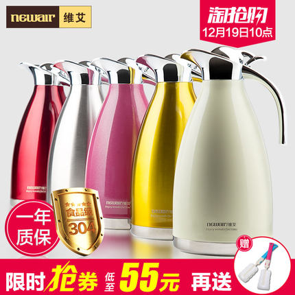 维艾 304不锈钢保温壶,内胆采用304食品级不锈钢材质,所用到的硅胶材质也是食品级的,双层隔热设计,保温更持久,2L大容量,可满足一般家庭使用。现天猫旗舰店特价至65元,可叠加30元优惠券,折后实付35元包邮,好价可入。