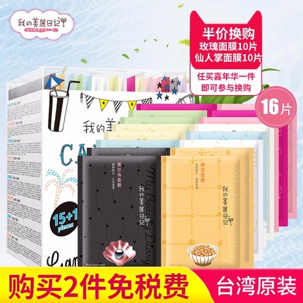 【66元包邮包税(需用券)我的美丽日记 秋冬补水保湿面膜礼盒16片】