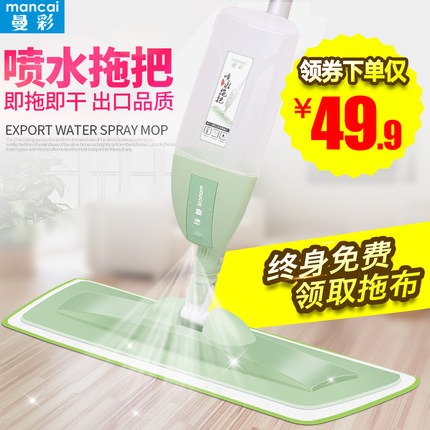 【曼彩 家用旋转平板喷水拖把 水箱喷雾(第一款)劵后39.9包邮】
