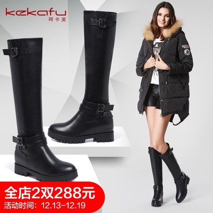 【珂卡芙 粗跟尖头黑色高筒过膝靴 129元包邮(209-80券)】