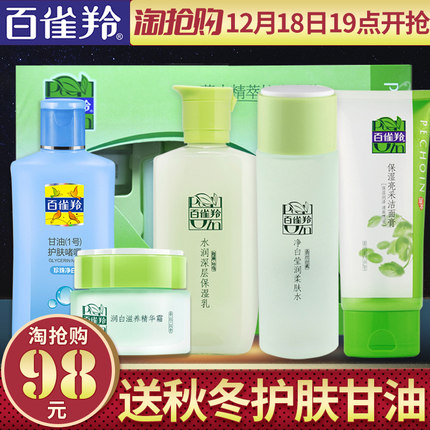 百雀羚秋冬草本护肤4件套礼盒,采用草本植物萃取精华,能够迅速补充肌肤水分,保湿润释,温和的止痒配方,能迅速吸收,舒缓肌肤干燥引起的瘙痒紧绷,卷后88元包邮,赠甘油1瓶+运费险。