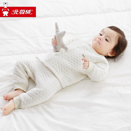 北极绒 婴儿 夹丝彩棉 保暖内衣,百分百棉料制作,亲肤无刺激,北极绒知名品牌,信誉好,值得信赖,专为婴儿设计,立体裁剪,两用档,灵活应变。 天猫有商家报价39.9元包邮,月销量1240 件。