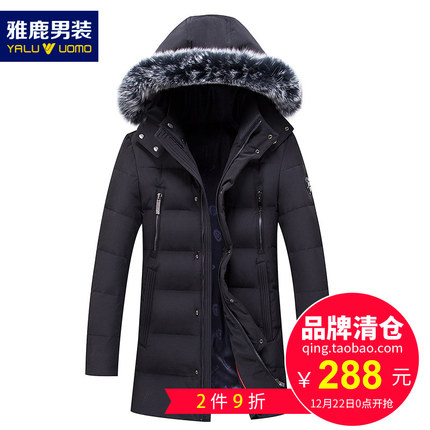 【yaloo/雅鹿男士中长款加厚连帽羽绒服 拍下288元包邮】