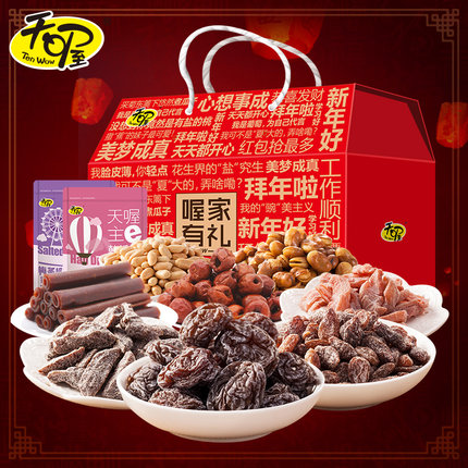 天喔 喔家有礼蜜饯炒货礼盒1534g,包含牛肉味兰花豆168g+淮盐花生288g+清菊香煮瓜子138g+韩话梅118g+盐津梅条118g+盐津桃肉118g+情人梅118g+盐津葡萄118g+脆冬枣130g+果丹皮220g,10袋大包装,共1534g超大分量,所选产品都是资深吃货推荐,比单买更省,性价比更高,自吃特满足,精美大礼盒,送礼有面子。