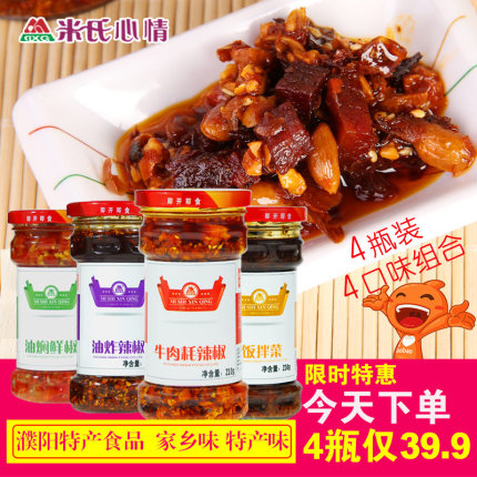 【米氏特产 辣椒酱 4瓶 29.9元包邮(39.9-10券)】