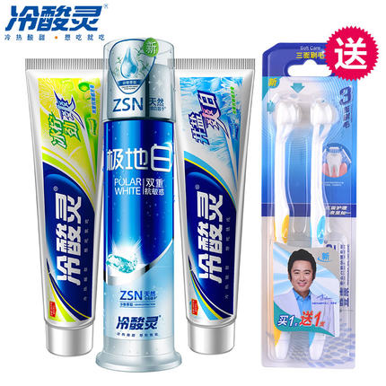 冷酸灵 极地白 直立按压式 牙膏套装,多重口味,亮白护敏,能舒缓敏感牙神经,有效缓解牙疼痛。