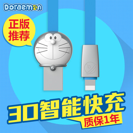 Rock 洛克 哆啦A梦苹果数据线1米,哆啦A梦正版授权,3D立体铸造图案,造型可爱质感优良。锌合金接头使用寿命是普通接头的3倍,高效3A充电,配以高品质线材,传输稳定快速,兼容ios10及以下系统。天猫专卖店售价29元,领取10元券,实付19元包邮,其他渠道29元起。