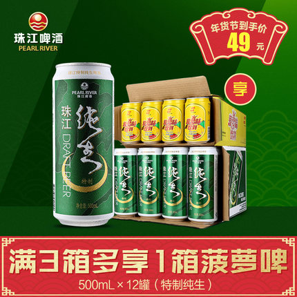 【珠江啤酒 特制纯生 500ml*12罐 券后39.8元包邮京东同款56元】