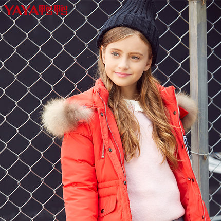 【鸭鸭 女童大毛领连帽羽绒服120-150cm 299元包邮(399-100券)】