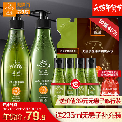 滋源 无患子 控油清爽 洗护套装含有无患子提取物、现天猫旗舰店售价79.9元,可叠加20元优惠券,折后实付59.9元包邮,包含洗发水265ml+235ml+60ml+护发素265ml+60ml+60ml,赠的补充装成分跟瓶装没有区别,这样一套组合超市里肯定百元以上。