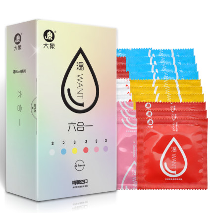 这款大象六合一避孕套,零感超薄,薄似无戴,紧致且自然。活力自信款还有果香味,让你爱的同时,无异味,多倍润滑,多重畅快,一点也不尴尬。