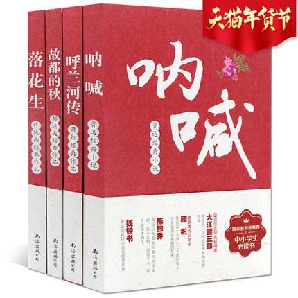 呐喊+呼兰河传+故都的秋+落花生四本套装,分别为鲁迅、萧红、郁达夫、许地山的经典作品,文学类目青少年必读书目,受到国家教育部推荐。天猫专营店售价24.8元,领取10元券,实付14.8元包邮,折合只要3.7元一本。