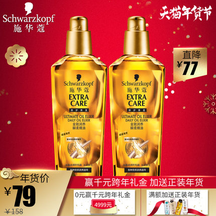 【¥79包邮 施华蔻(Schwarzkopf) 金致润养瞬柔护发精油 75ml*2瓶 】