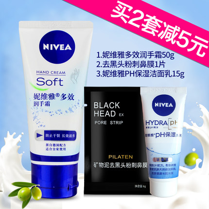 【妮维雅多效润手霜50ml+洁面15g+黑头鼻膜1片卷后9.9元包邮】
