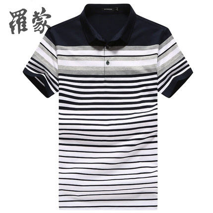【罗蒙 男短袖双丝光慢条纹商务休闲Polo衫 券后39元包邮】