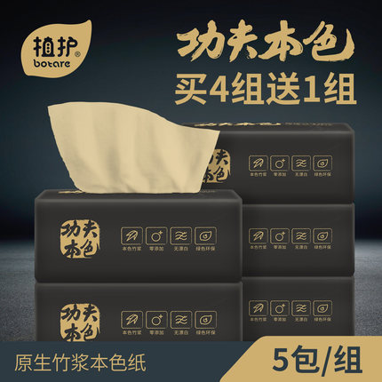 【植护黄色原生竹浆本色抽纸3层*110抽*5包 拍下9.99包邮】