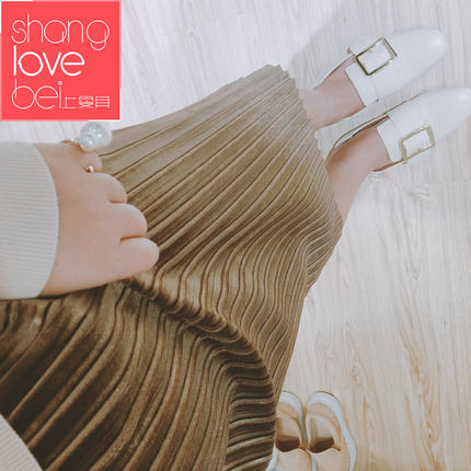 【上爱贝 丝绒复古中长款开叉A字百褶裙 29.9元包邮(49.9-20券)】