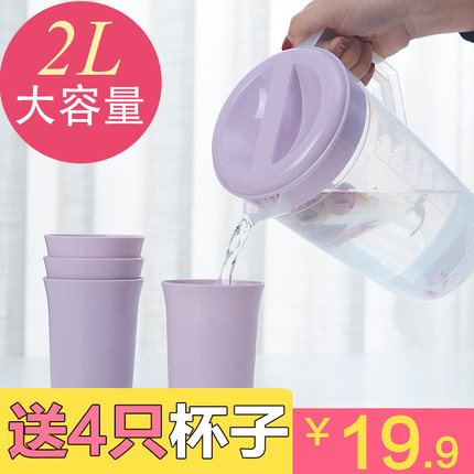【澧品 塑料耐热凉水壶2L+杯子*4 16.9元包邮(19.9-3券)】