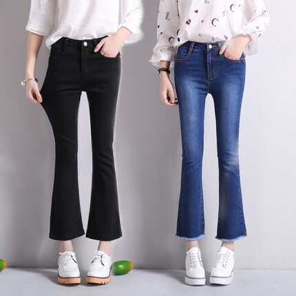 【丝滑滑 九分喇叭中高腰弹力牛仔裤 34元包邮(59-25券)】