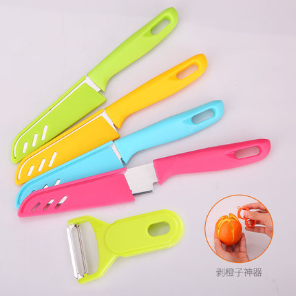这套削水果套装包括:削皮器+水果刀+剥橙子神器+挖猕猴桃果肉神器+切菜护手器,天猫专营店现售14.9元,可领5元优惠券,券后9.9元包邮入这五件套
