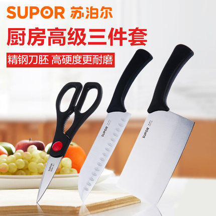 采用优质不锈钢制作,耐腐蚀,易清洗,韧性十足。刃口经过特殊工艺打造,刃口锋利,经久耐用。手柄处采用ABS高强度工程塑料,易于抓握。爱她就送她厨房套装,改变你们的厨房生活从拥有第一把苏泊尔刀铲套装开始。