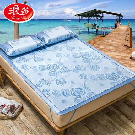 【44元包邮(49-5)浪莎 冰丝凉席三件套 0.9/1.2/1.5三尺寸同价】