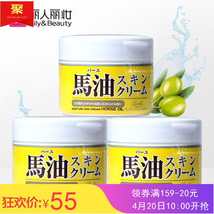 【日本北海道天然滋润马油幼滑乳霜 220g*3瓶 券后50元包邮,折合16.6元/瓶】