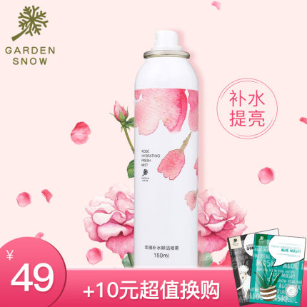 某猫有商家报价49元,使用20元券,实付29元包邮,月销量8778件。 小园 玫瑰补水鲜活喷雾 150ml,花印旗下,玫瑰提取,补水保湿,舒缓细致肌肤,提亮肤色。