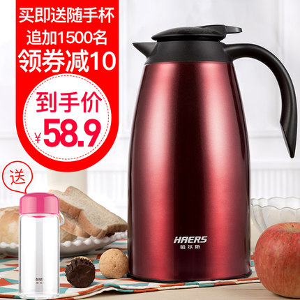 【哈尔斯 不锈钢保温壶2L 劵后38.9元包邮 送水晶杯1个】