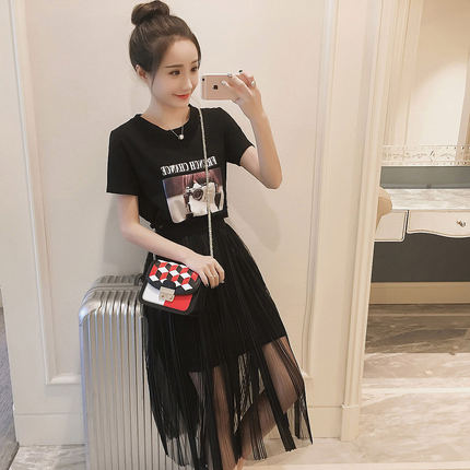 纯丫 短袖印花中长款上衣+蕾丝半身裙,优质棉混纺+网纱面料,甜美减龄,舒适有型,剪裁合身,轻松惬意。商家报价99元,可用50元券,实付49元包邮。