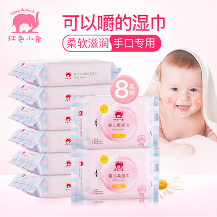 【红色小象 婴儿 手口专用湿巾纸 25抽*8包 29元包邮】