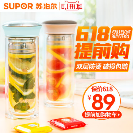 【苏泊尔 男女士双层耐热玻璃水杯280ml 券后49元包邮】