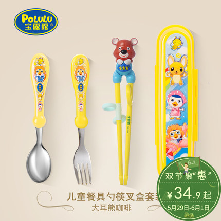 宝露露 儿童餐具套装,筷子使用天然玉米材质制作,干净卫生,安全无污染,宝宝放心用,调羹方面使用了食品级304不锈钢,精商家报价34.9元,可用15元券,实付19.9元包邮