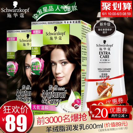 【【Schwarzkopf/施华蔻】无氨染发剂2盒装 券后69包邮 送羊绒脂润发乳600ml】